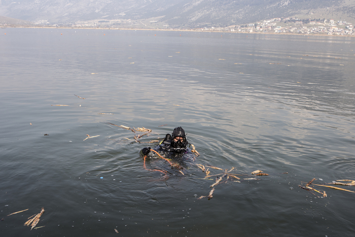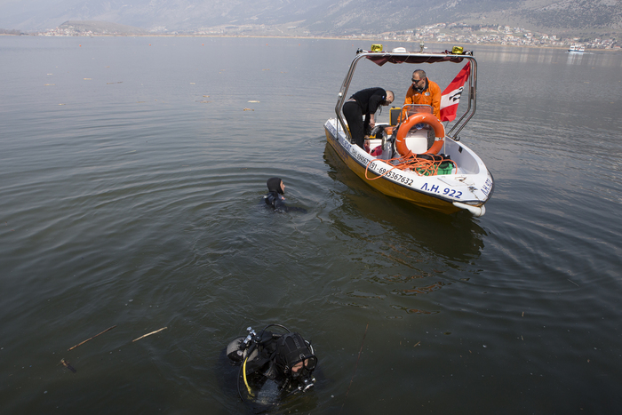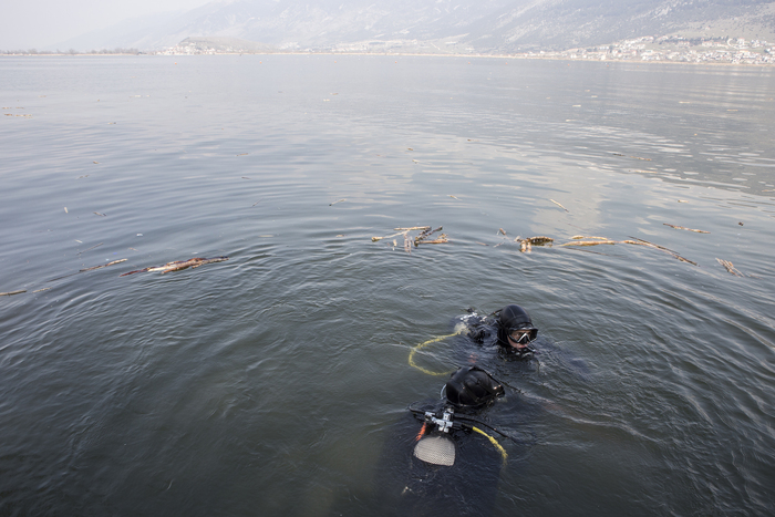 Το πρωί ερευνήθηκε τμήμα του βυθού της λίμνης. Δύο δύτες με κατάλληλο εξοπλισμό και κάμερα βυθού ερεύνησαν προσεκτικά μέσα στα θολά νερά της Παμφώτιδας και με την ορατότητα -όπως είπαν- ούτε στο μισό μετρό, χωρίς ωστόσο να εντοπίσουν κάποιο στοιχείο, που να μπορεί να αξιολογηθεί.